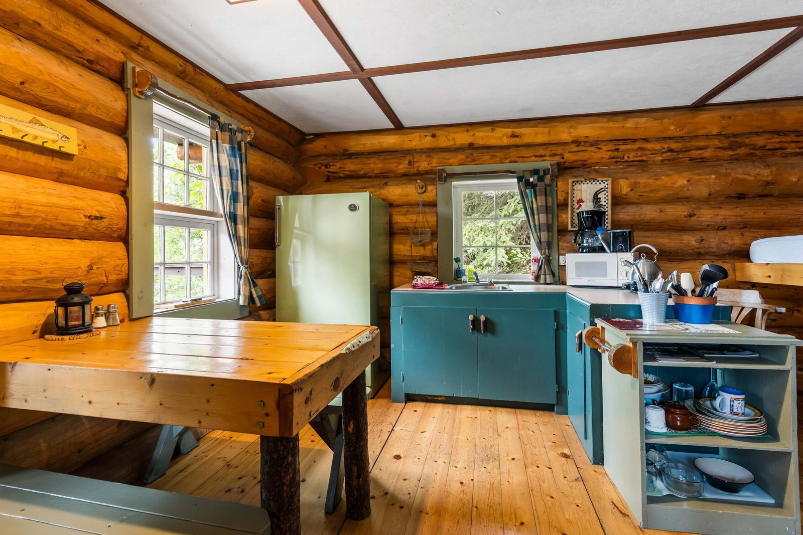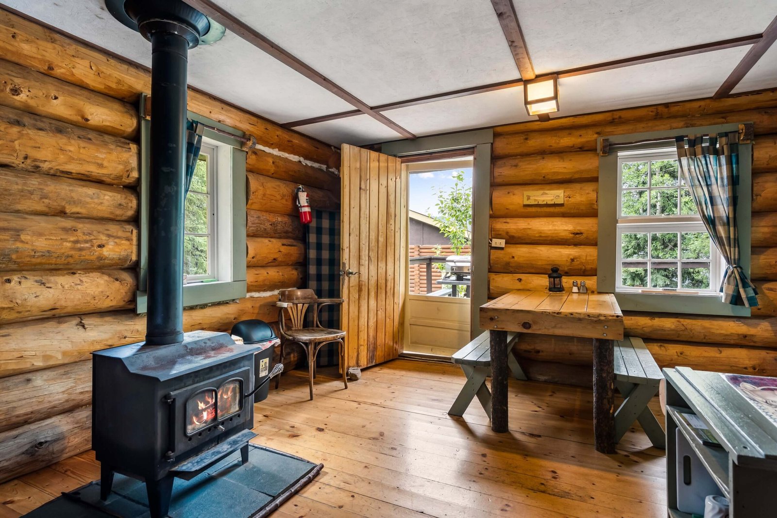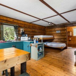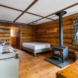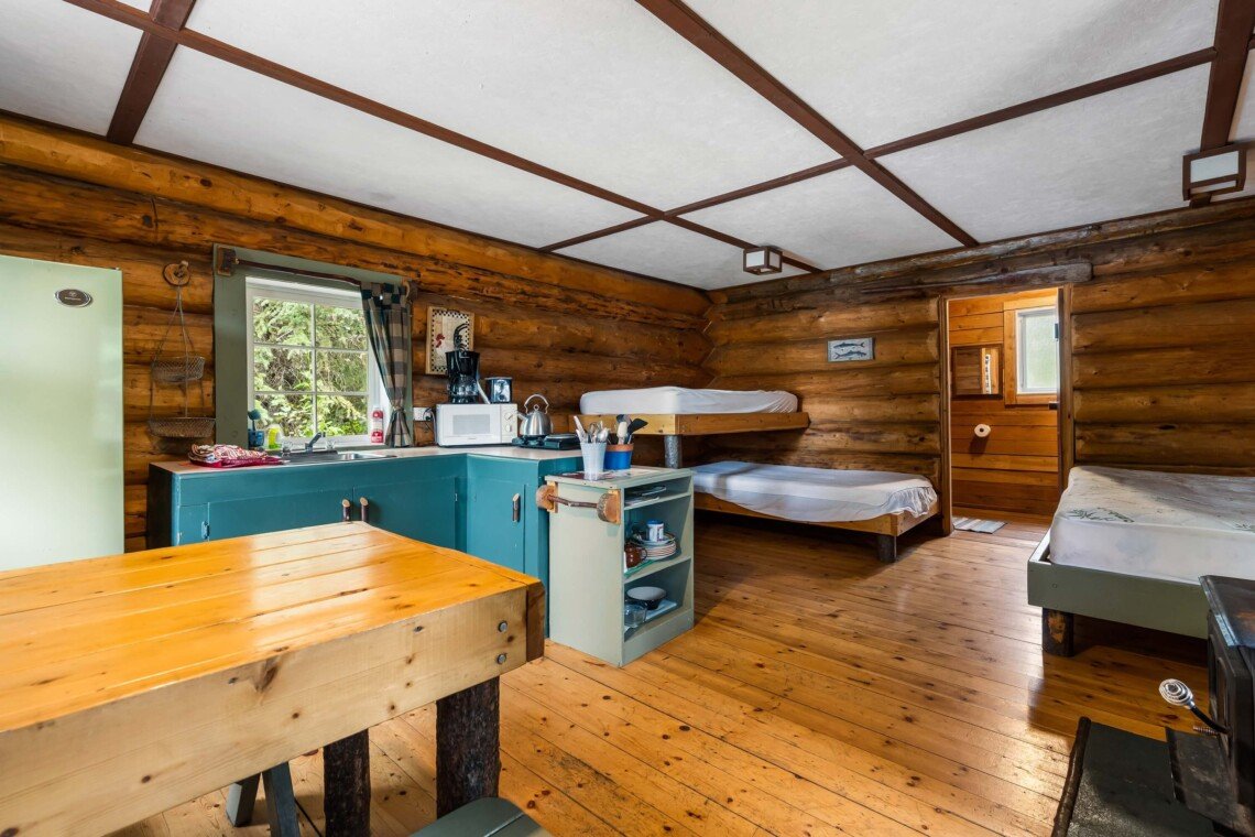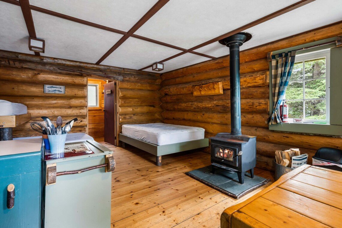 The kitchen comes fully equipped with a fridge, stove/oven, microwave, toaster, and drip coffee maker, plus all essential utensils. In the evenings, relax by the freestanding wood stove or fire up the barbeque on the deck for outdoor dining. A private dock is just steps away, perfect for swimming and enjoying the lake. Simply bring your towels, bedding, food, and beverages — everything else is ready for your stay.